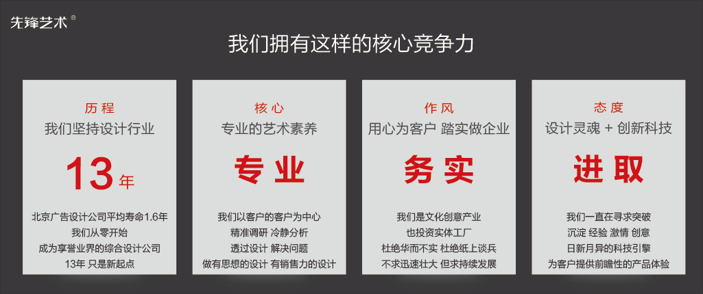我們協(xié)助企業(yè)提升企業(yè)形象、優(yōu)化產(chǎn)品風(fēng)格、洞悉市場(chǎng)機(jī)遇、發(fā)展品牌資產(chǎn)、成就客戶價(jià)值;杜絕華而不實(shí),杜絕紙上談兵 !